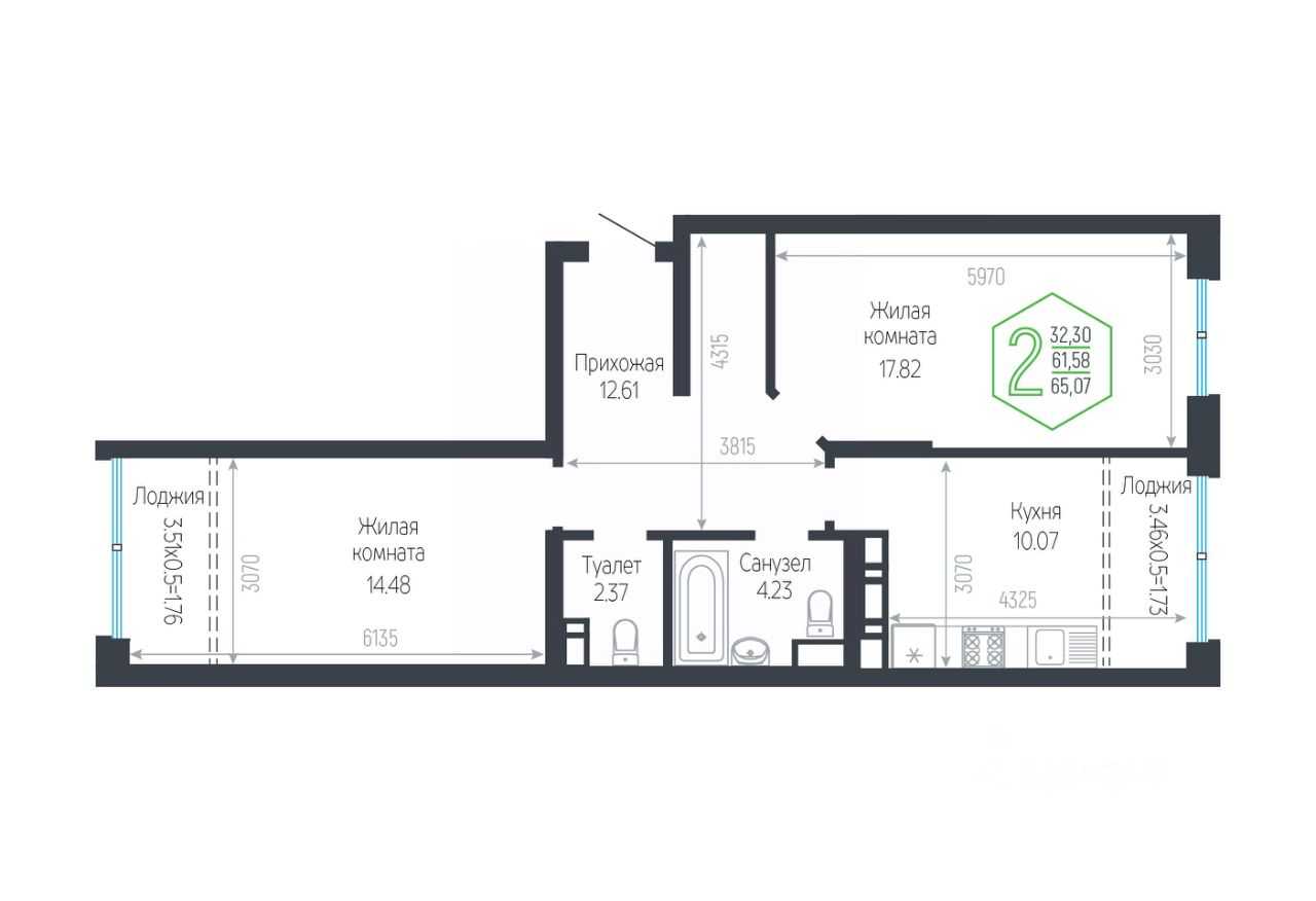 Общая площадь65,07 м²
