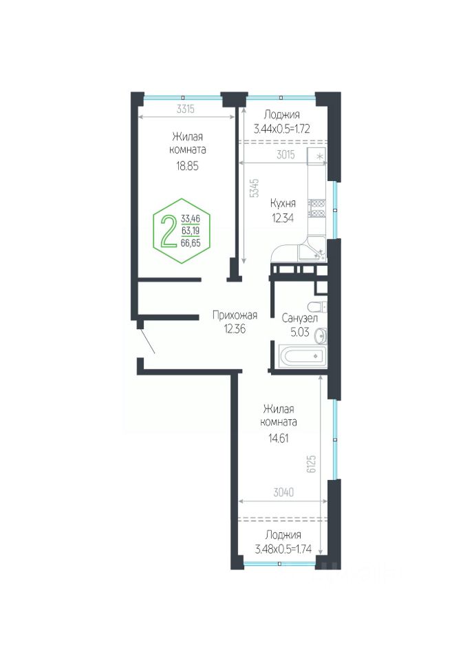 Общая площадь66,65 м²