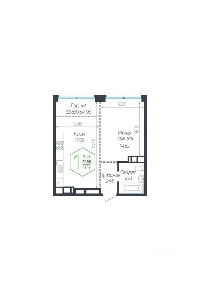 Общая площадь41,49 м²