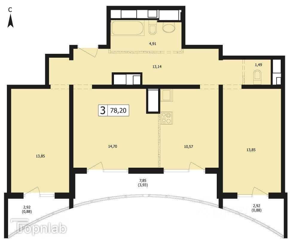 Арт. 107340868 Продам комфортную 3-комнатную квартиру 78,20 кв.м с живописным видом из окон в ЖК "Парусная Регата" по ул. Автолюбителей, в ГМР.