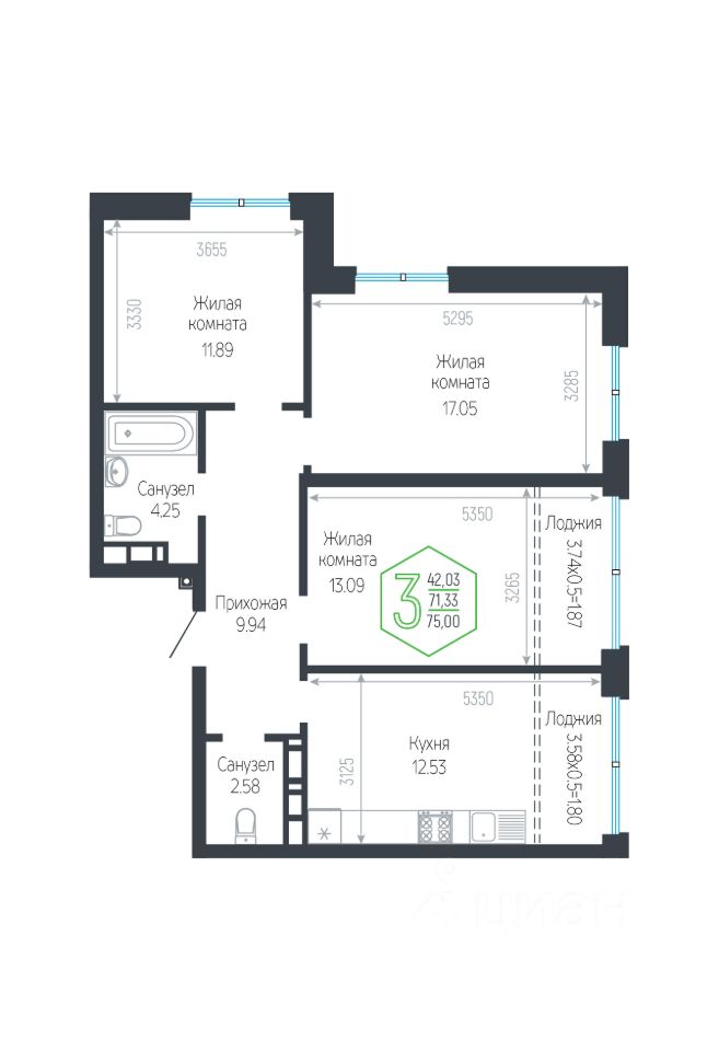 Общая площадь75 м²