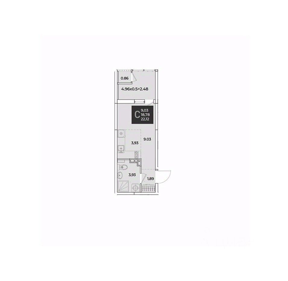 Общая площадь22,12 м²