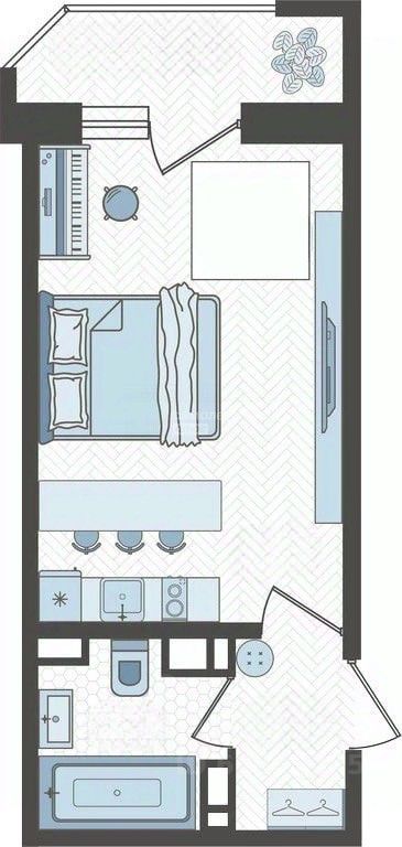 — Функциональная планировка: жилая площадь 14,6 м², высота потолков 2,7 м.