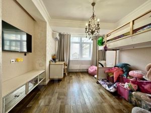 Квартира находится на 11 этаже . Из окон открываются потрясающие виды на историческую часть города. Планировка максимально продумана дизайнерами: общ. S=131 м, 3 спальни и кухня-гостиная, 3 гардеробные, 2 с/у ( с ванной и душевой кабиной), просторная витражная лоджия .