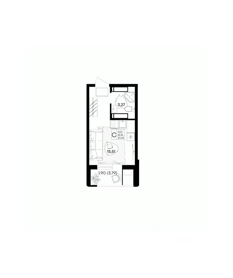 Общая площадь20,68 м²