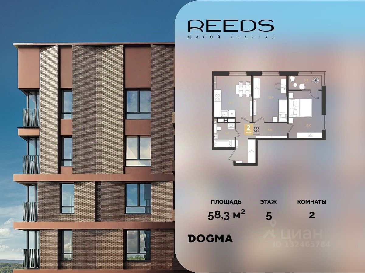 Срок сдачи: (4 кв. 2028, общей площадью 58.3 кв.м., на 5 этаже.)