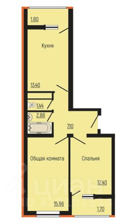 Просторная жилая площадь составляет 28.4 квадратных метров, а кухня занимает уютные 13.4 квадратных метра, предоставляя достаточно места как для приготовления пищи, так и для семейных ужинов. Квартира может похвастаться двумя балконами.