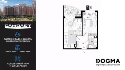 В продаже 1-комнатная квартира от застройщика! Мкр. "Самолет" 4 очередь, г. Краснодар, Литер 23 Срок сдачи: 2 кв. 2023, общей площадью 40.7 кв.м., на 2 этаже.