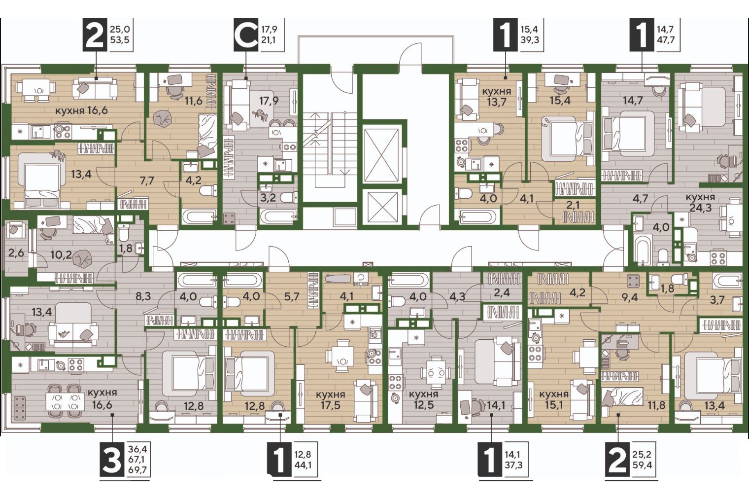 В продаже 3-комнатная квартира от застройщика! Мкр. "DOGMA PARK" г. Краснодар, Литер 24 Срок сдачи: 4 кв. 2027, общей площадью 69.7 кв.м., на 13 этаже.