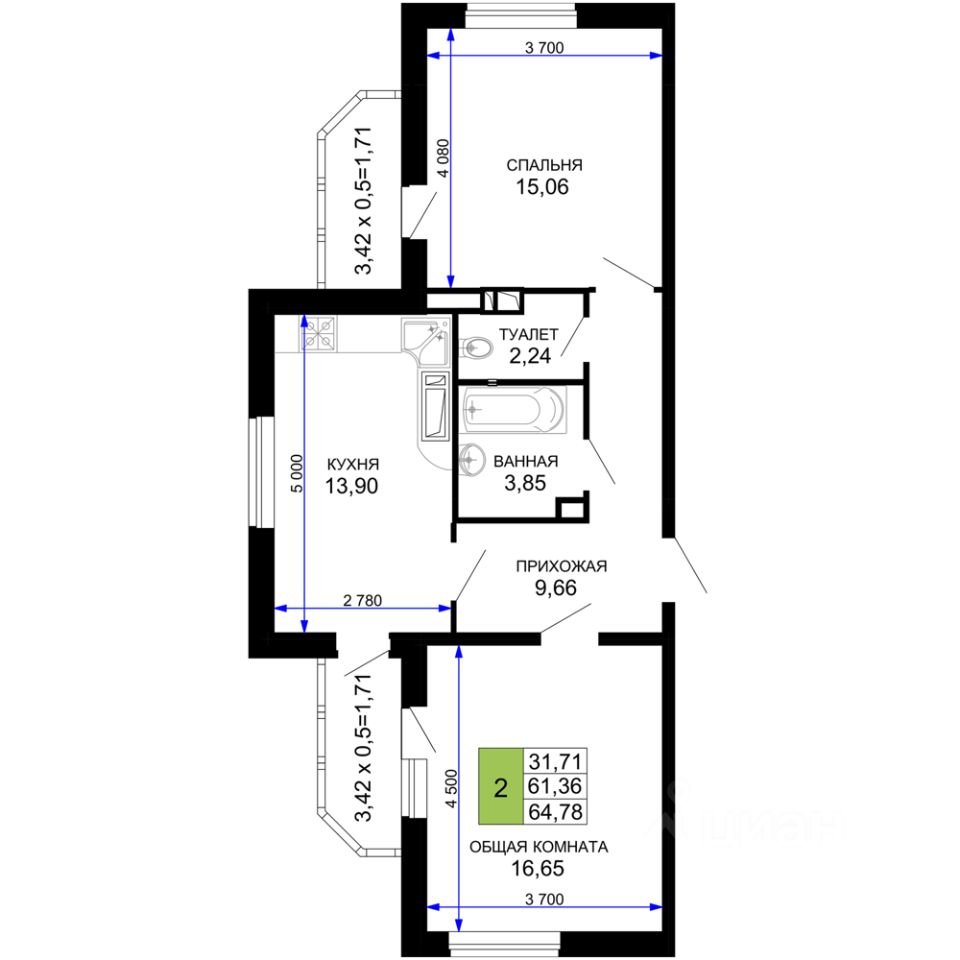Общая площадь63,4 м²