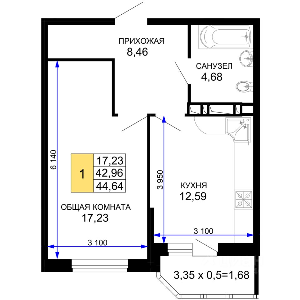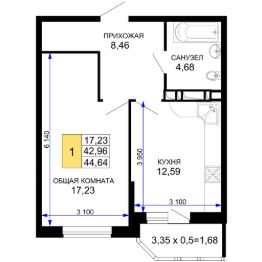 Продается 1-комн. квартира, 43,6 м²