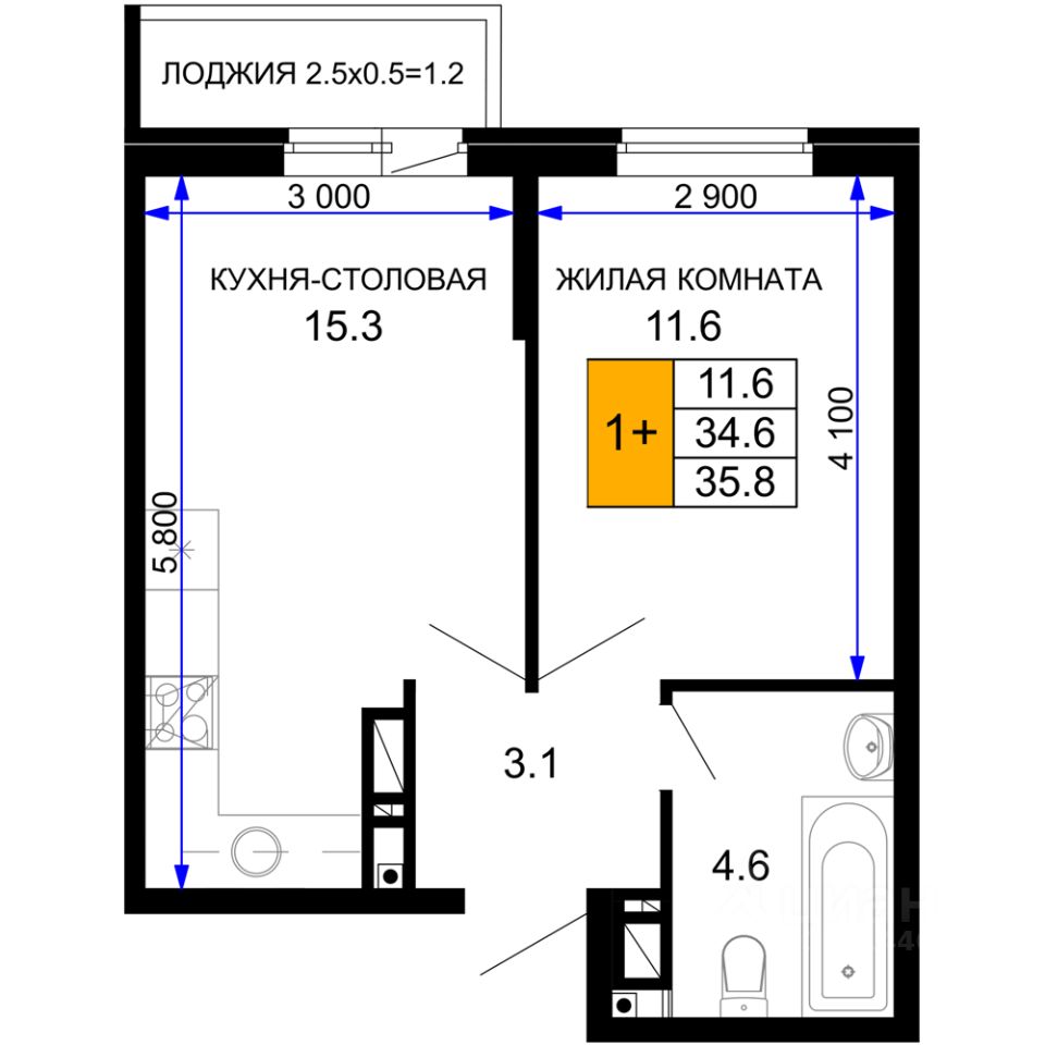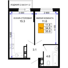 Общая площадь35,75 м²