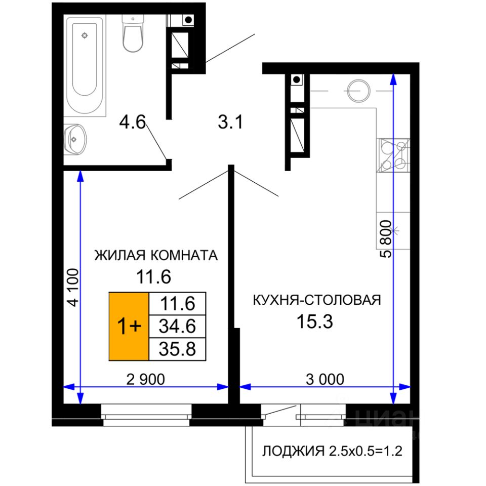 Общая площадь35,85 м²