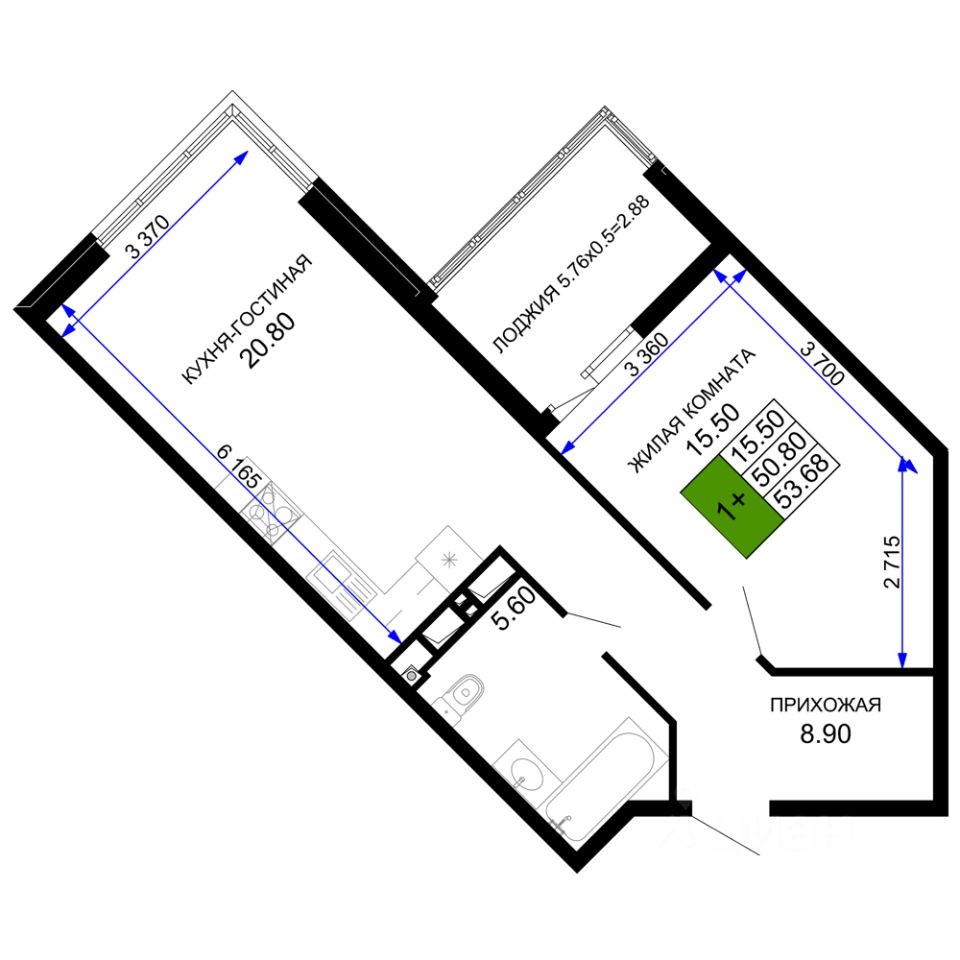 Общая площадь54,95 м²