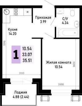 Общая площадь35,51 м²
