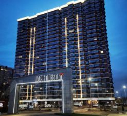 Территория жилого комплекса благоустроена: лаунж-зоны, зоны для занятием спортом, детские игровые площадки, амфитеатр, много парковочных мест.