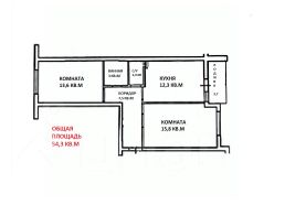 Общая площадь 54,3 кв.м (без учета лоджии)