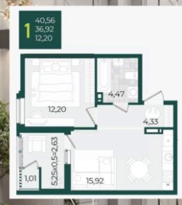 В продаже стильная 1 комнатная квартира с большой кухней 15,92м2 ,с выходом на лоджию 5,25м2
