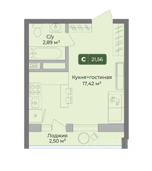 Пеpеуcтупка cтудии 21.56 кв. м. в строящемся доме (срок сдачи 1 кв. 2026 - Литер1) от ЖК "Цитрус".