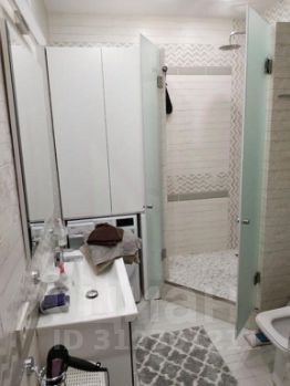 Санузел совмещенный, встроенная душевая кабина, стиральная машина LG, бойлер на 30 литров фирмы Ariston.
