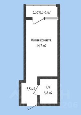 Этаж 13/19, площадь 22кв.м.