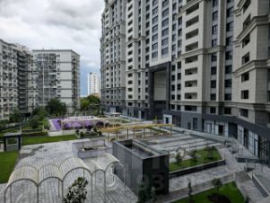 На закрытой охраняемой территории предусмотрен двухуровневый паркинг для автомобилей жильцов. Во дворе организованы современные детские и спортивные площадки. Нижние этажи отданы под булочную, аптеку, магазины, продовольственный супермаркет и банки.