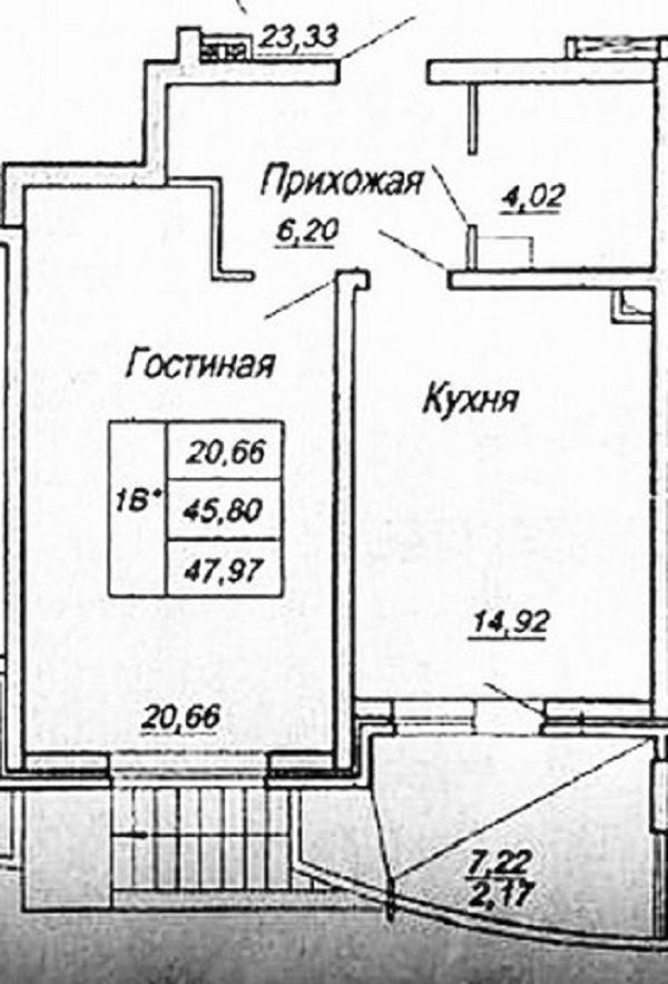 Квартира общей площадью 48 кв.м отличной планировки: прихожая 6,2 кв.м, совмещенный санузел 4 кв.м, изолированная комната 20,66 кв.м, кухня-гостиная 15 кв.м, балкон.