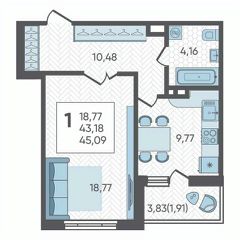 Общая площадь45,09 м²