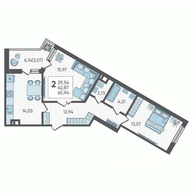 Общая площадь65,94 м²