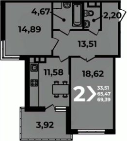 Общая площадь69,39 м²