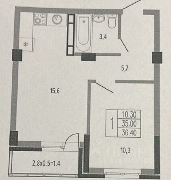 Квартира общей площадью 36,4 кв.м современной планировки, где прихожая 5,7 кв.м изолированная комната 10,3 кв.м, санузел совмещен, кухня-гостиная 15,6 кв.м, балкон.