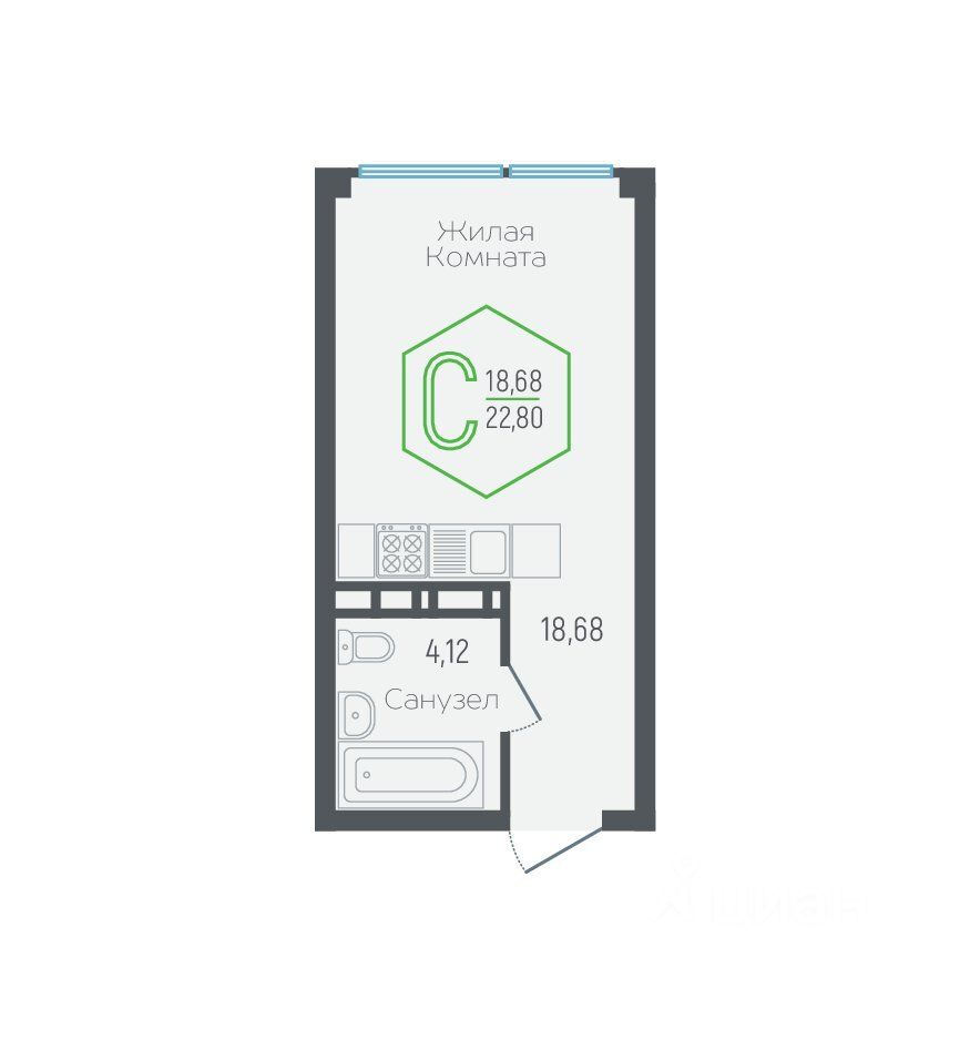 Общая площадь22,8 м²