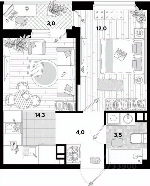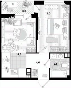 Квартира площадью без учета балкона 33.9м², расположена на 3 этаже 16-этажного дома. Планировка удобная: Изолированные комнаты.