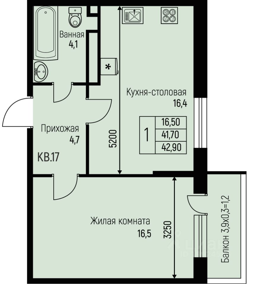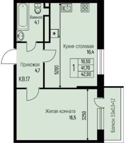 42,9 м²