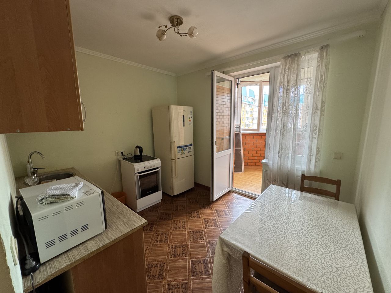 Имеется большая лоджия с прекрасным видом на реку Кубань.