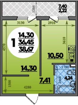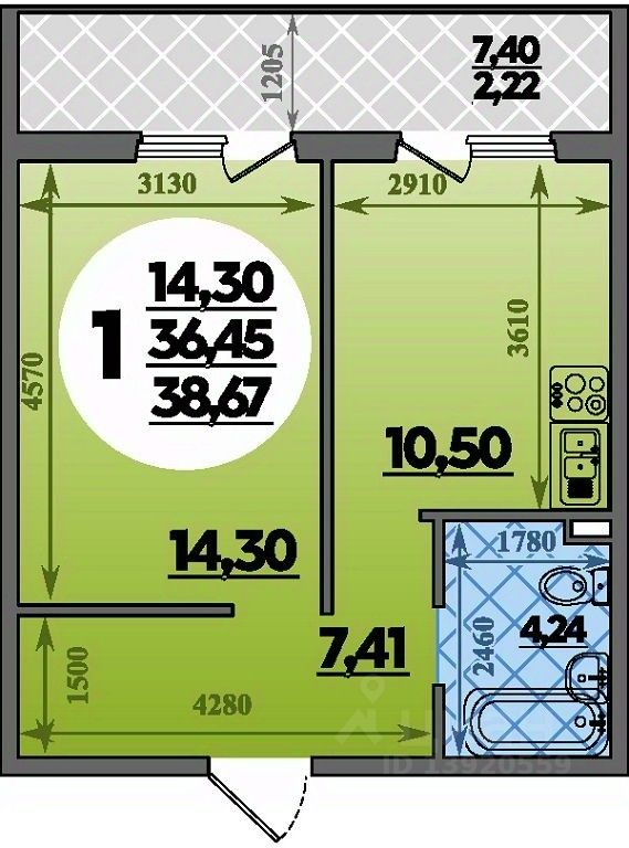 Продаётся 1-комнатная квартира в сданном доме (Литер 14), срок сдачи: I-кв. 2025, общей площадью 38.67 кв.м., на 1 этаже. РАСПОЛОЖЕНИЕ