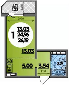 Продаётся студия в сданном доме (Литер 14), срок сдачи: I-кв. 2025, общей площадью 26.19 кв.м., на 4 этаже. РАСПОЛОЖЕНИЕ
