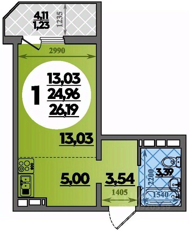 Продаётся студия в сданном доме (Литер 14), срок сдачи: I-кв. 2025, общей площадью 26.19 кв.м., на 6 этаже. РАСПОЛОЖЕНИЕ