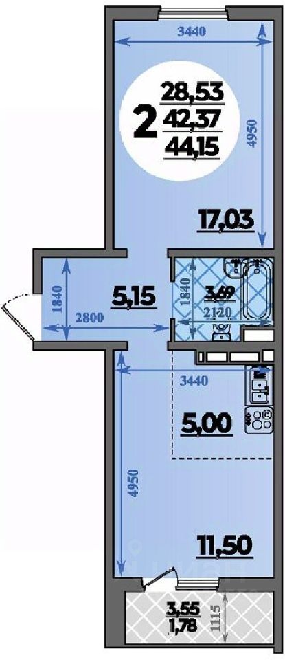 Продаётся 2-комнатная квартира в сданном доме (Литер 14), срок сдачи: I-кв. 2025, общей площадью 44.15 кв.м., на 6 этаже. РАСПОЛОЖЕНИЕ