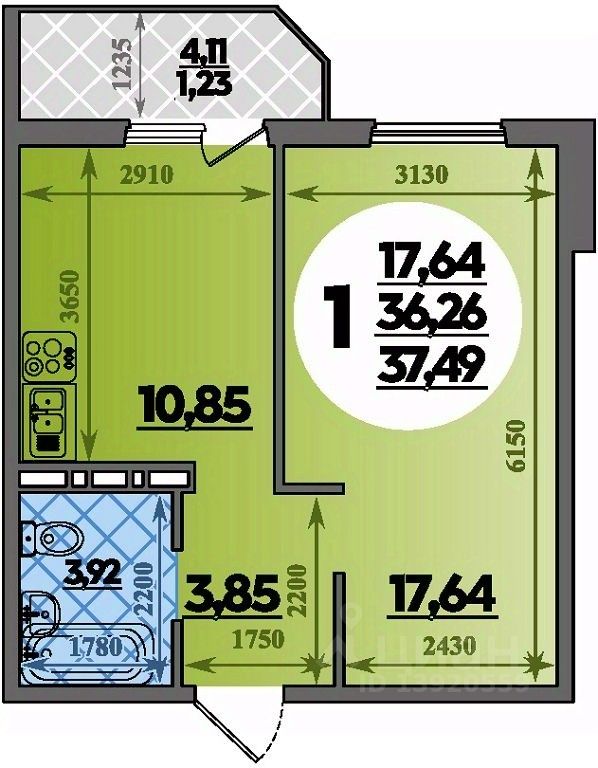 Продаётся 1-комнатная квартира в сданном доме (Литер 14), срок сдачи: I-кв. 2025, общей площадью 37.49 кв.м., на 3 этаже. РАСПОЛОЖЕНИЕ
