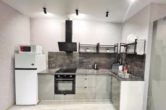 Стильная кухня с качественной фурнитурой и новой техникой LG, кровать Икея и диван останутся вам, новый телевизор диагональ 127 см., новая микроволновка на 20 литров, холодильник 185 см., комод, прихожая!