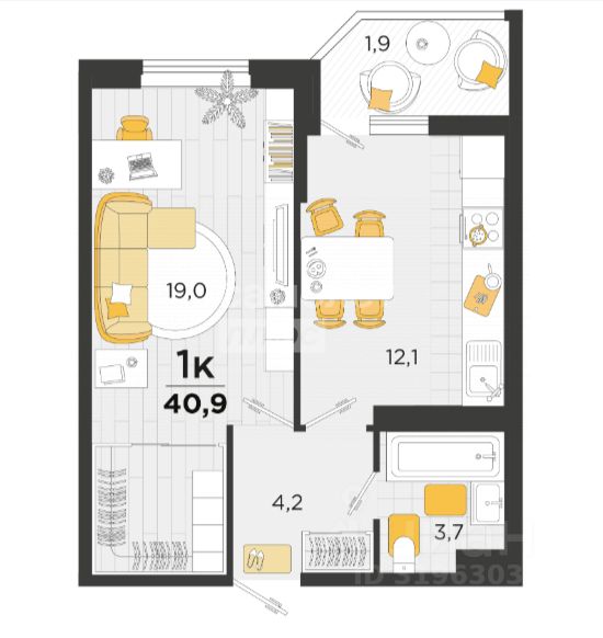 Арт. 110326410 Просторная 1-комнатная квартира в ЖК "Сказка Град"