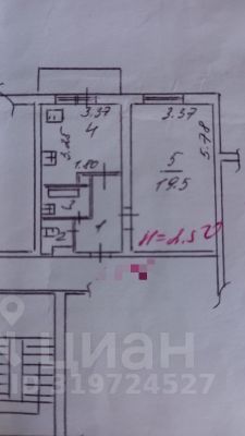 - Большая, квадратная кухня 10 кв.м. Жилая комната 19,5 кв.м.