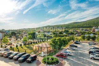 Два просторных балкона, в отделке которых использован искусственный камень и керамогранит. Комнаты изолированные, панорамные окна выходят на 2 стороны: на горы и лес. Высота потолка 3 метра 10 см, что дает дополнительный простор и воздушность квартире.