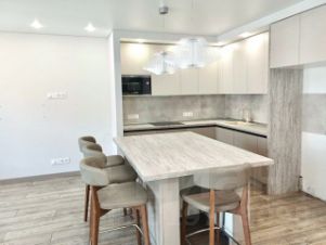 Квартира находится на 15 этаже . Из окон открываются потрясающие виды.Планировка: общ. S=82 м, 2 спальни и кухня-гостиная, 2 с/у, просторная витражная лоджия . В квартире выполнен качественный ремонт. Вся мебель и техника остаются.