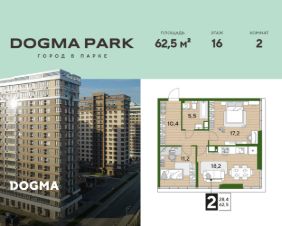 В продаже 2-комнатная квартира от застройщика! Мкр. "DOGMA PARK" г. Краснодар, Литер 24 Срок сдачи: 4 кв. 2027, общей площадью 62.5 кв.м., на 16 этаже.