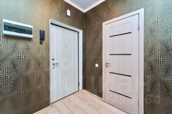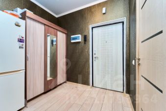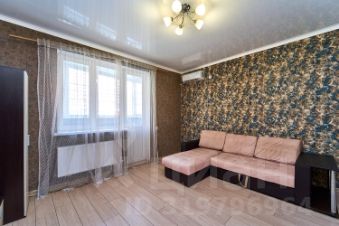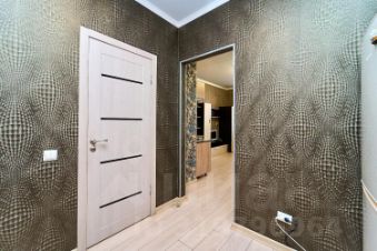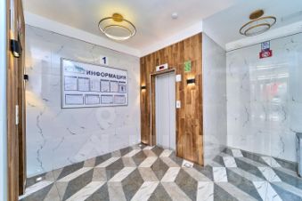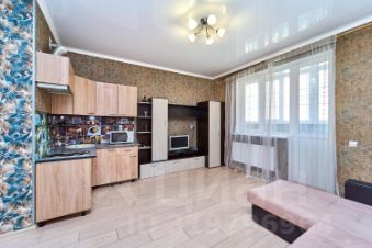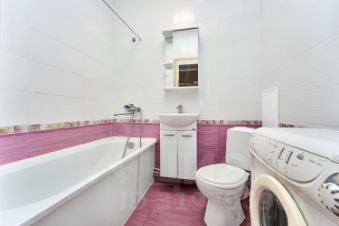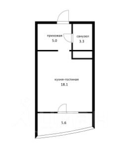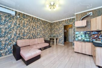 В прихожей площадью 5 м2 установлены шкаф-гардероб и холодильник. Широкая комната площадью 18.2 м2 хорошо освещена. В команте есть раскладной диван, кухонный уголок с индукционной плитой, вытяжкой и микроволновкой, стенной шкаф с телевизором, сплит-система. В комнате и прихожей на полу плитка. Совмещенный санузел полностью в кафеле, установлена ванна, есть стиральная машина.