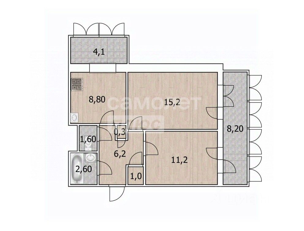 В микрорайоне Звёздный продаётся квартира общей площадью 46.9 кв. м с двумя изолированными комнатами 11.2 и 15.2 кв. м соответственно. Ленточная лоджия на обе комнаты, кухня 8.8 кв. м (увеличена за счёт лоджии), санузел раздельный. Квартира достаточно светлая, комнаты правильной формы. В просторной прихожей имеется ниша-гардеробная. Окна выходят во двор и на улицу. Все, что нужно для жизни - рядом с домом.