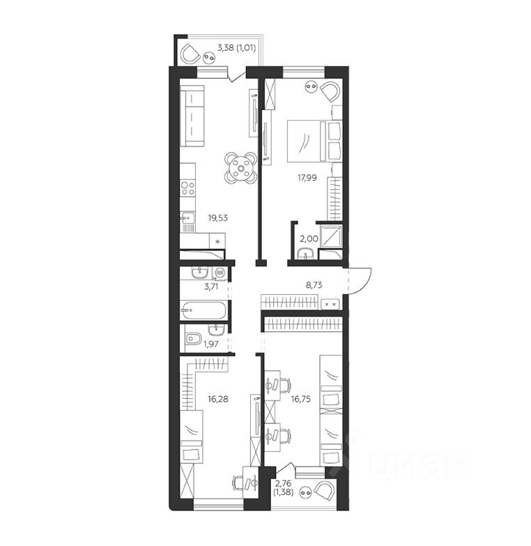 В проекте представлены планировки от 1 до 3-комнатных квартир. Сдаются они с отделкой White Вох, высотой потолков 2.68 метров и стандартными окнами. На лоджиях и балконах выполнено панорамное остекление.