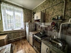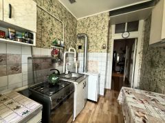 Общая площадь 45 кв.м., жилая 27,4 кв.м., комнаты смежные, кухня 7.6 кв.м., раздельный санузел.